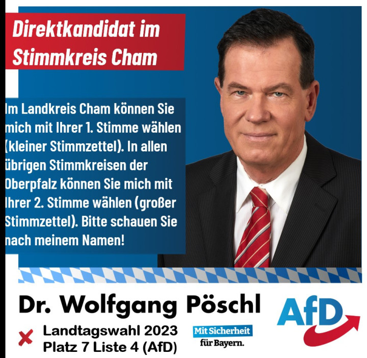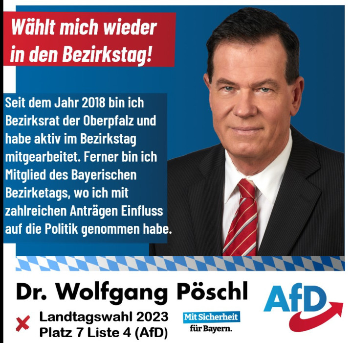AfD-Direktkandidat Dr. Wolfgang Pöschl für die Landtags- und Bezirkstagwahl 2023 in Bayern